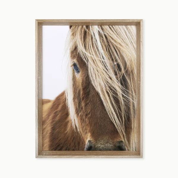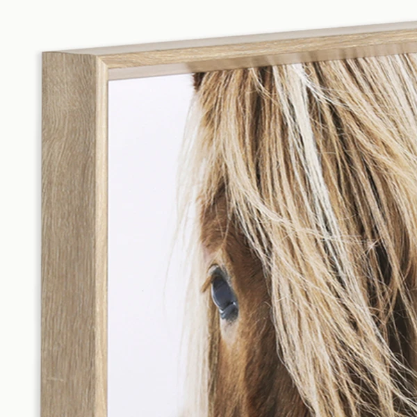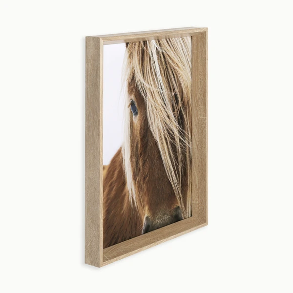 Blondie is a framed graphic under glass with a textured blonde angled profile frame.