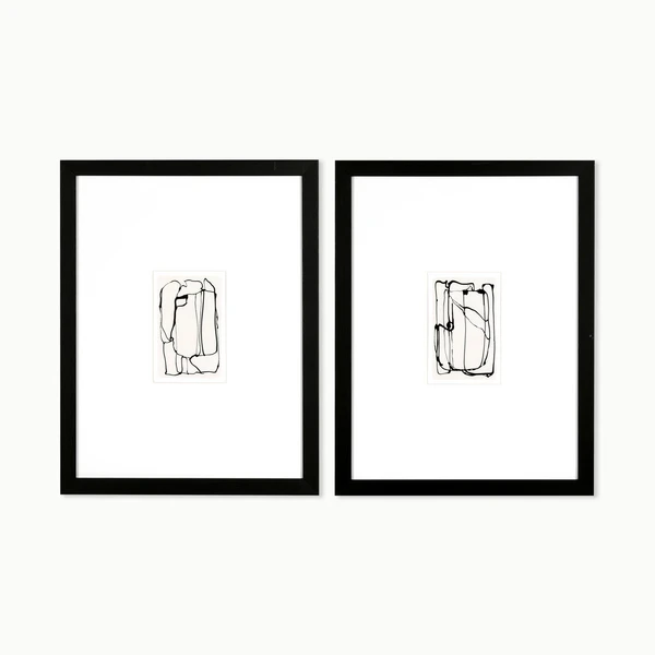 Linear is a framed graphics under glass with black textured molding frames. Set of 2.