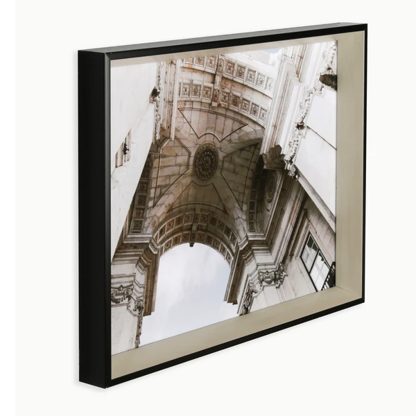 Look Up is a framed graphic under glass with a 2-tone black with cream angled profile frame.