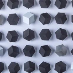 Movement in Squares II is among our most unique pieces. Destined to become a focal point in your home, this creation of silver, white, and black cubes set on a fabric backing in a clear acrylic shadowbox will fascinate guests and start conversations. This wall decor will add modern glamour and sophistication to any space. #2 in a series of 2.