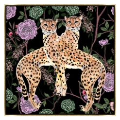 Printed on canvas with a hand-applied image brush gel finish and set in a gold floater frame, this striking work from Nikki Chu lends wild style and vibrant color to the wall.