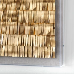 This carved wood panel enlivens any wall with its bold geometric design and hand-applied gold leafing that pops against a black ground.