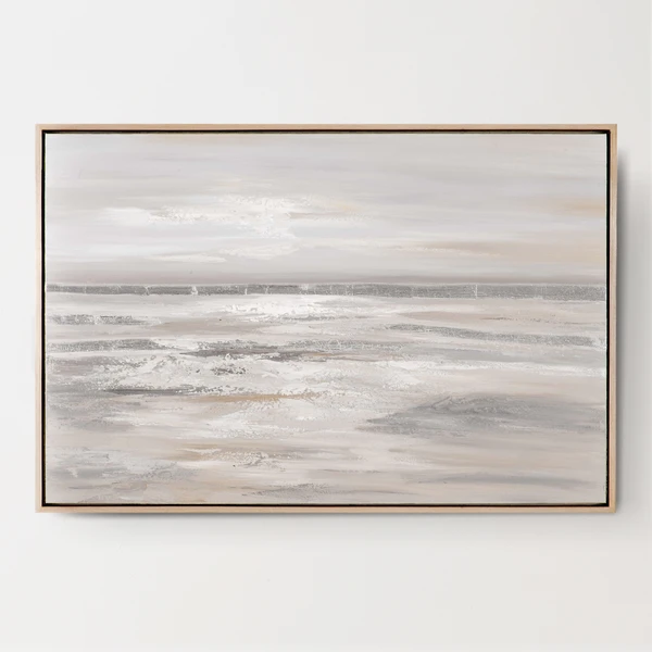 Our Sea Gaze painting on canvas is a serene picture of a hauntingly beautiful silver landscape. Cool greys and blues provide a relaxing element to any space in need of stunning allure.