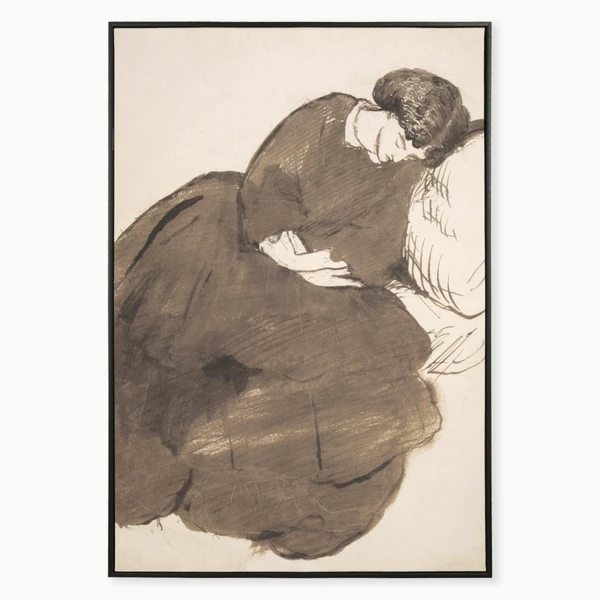 Sleeping Beauty is a gallery-wrapped natural linen canvas set in an espresso wood tone floater frame.