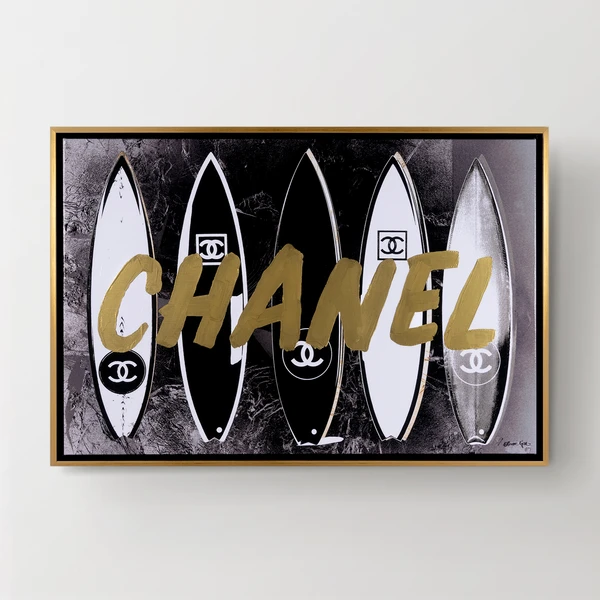 - Hand-stretched giclƩe print on canvas with handpainted gold lettering and finished with a glossy gel coat.
